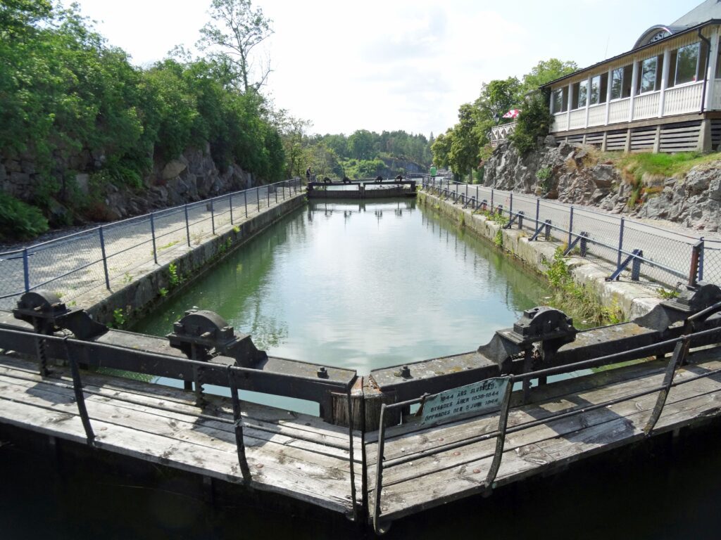 Die allererste Schleuse wurde bereits in ihrer ursprünglichen Form in Lilla Edet im Jahre 1607 eingeweiht.