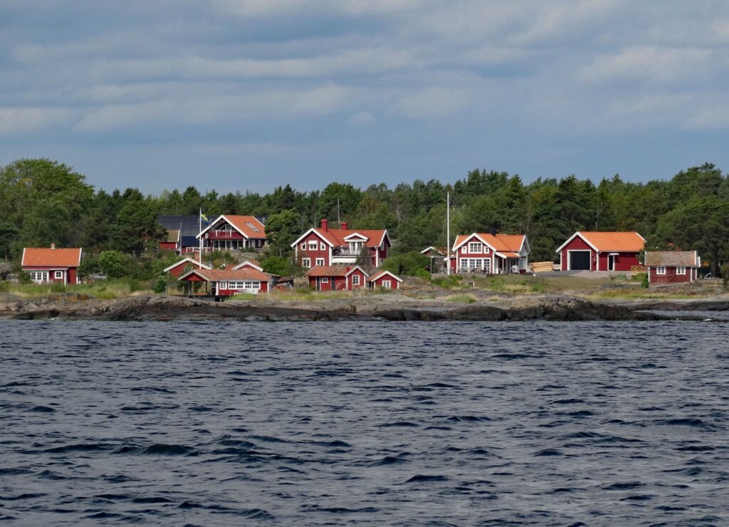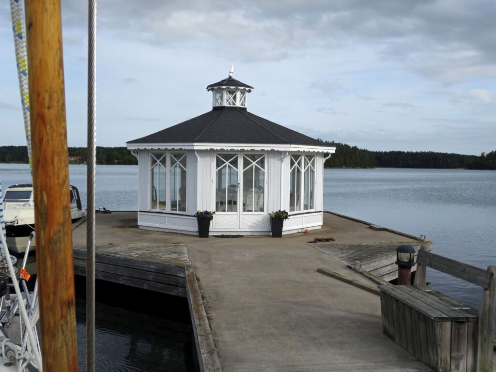 Wetter war heute sonnig bis bewölkt. Zunächst morgens kein Wind, dann Wind aus SSW bis zu 20 Kn in Böen. Da war im schönen Schärenfahrwasser nicht an Segeln zu denken.