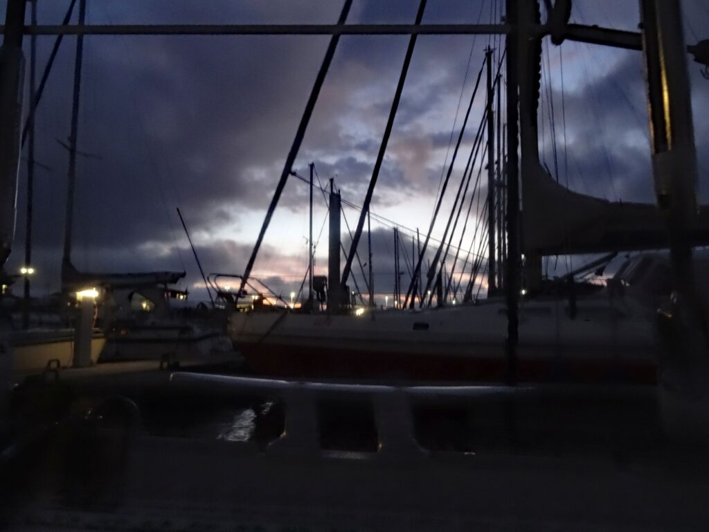 Wir verbringen einen ruhigen Sonntag, haben aber doch eine „produktive“ Phase, indem wir die Genua trotz raumen Windes neu anschlagen. Das klappt eigentlich sehr gut.