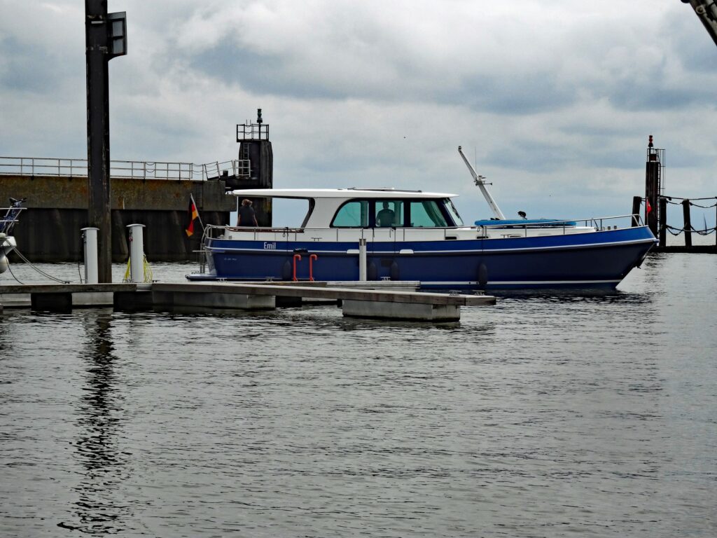 Zwischendurch sehen wir ein Motorboot „Emil“ an der Tankstelle im Hafen – müssen wir doch direkt mal unserem Enkel Emil zeigen :-))