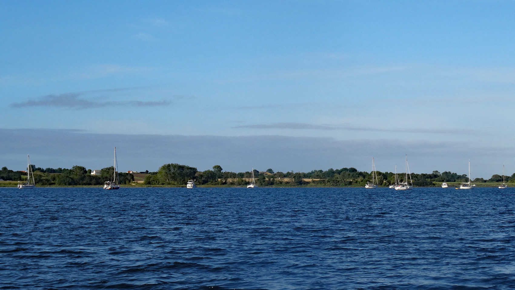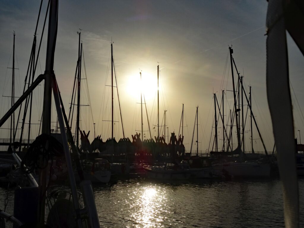 Wir können gleich die Fock und das Groß setzen, aber nach einer guten Stunde kommt der Wind aus SW2, also Motor an zur Unterstützung, denn wir haben ja Strecke vor uns.