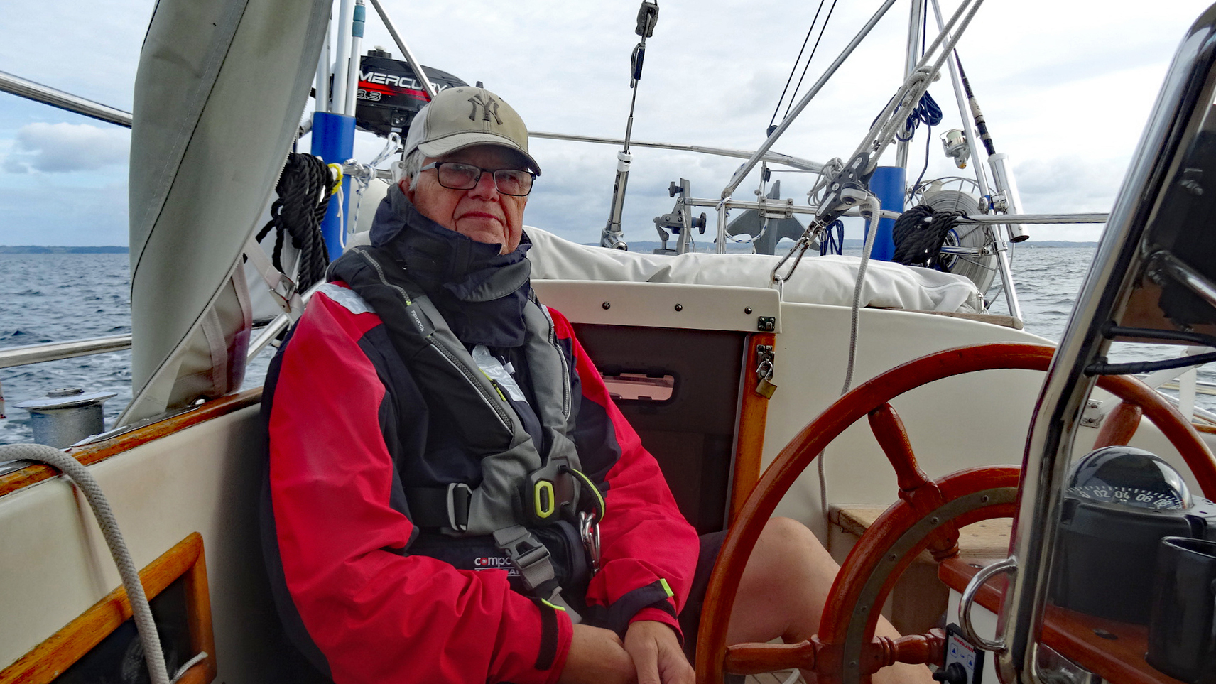 Es ist kaum zu glauben, Mitte August sitzt Wolf mit der Segeljacke hoch zugeknöpft am Steuer, weil es einfach nur kalt ist.