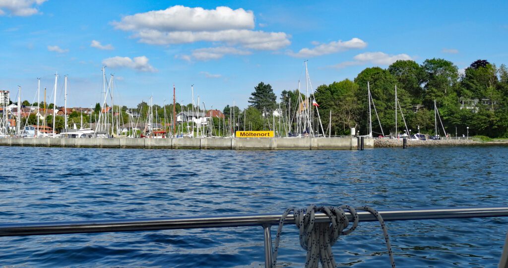 Um kurz nach 17:00h liegen wir nach 45,4 sm fest vor Anker in der Bucht vor Möltenort-Heikendorf. Außer uns liegen nur noch 2 Segelboote in der Bucht.