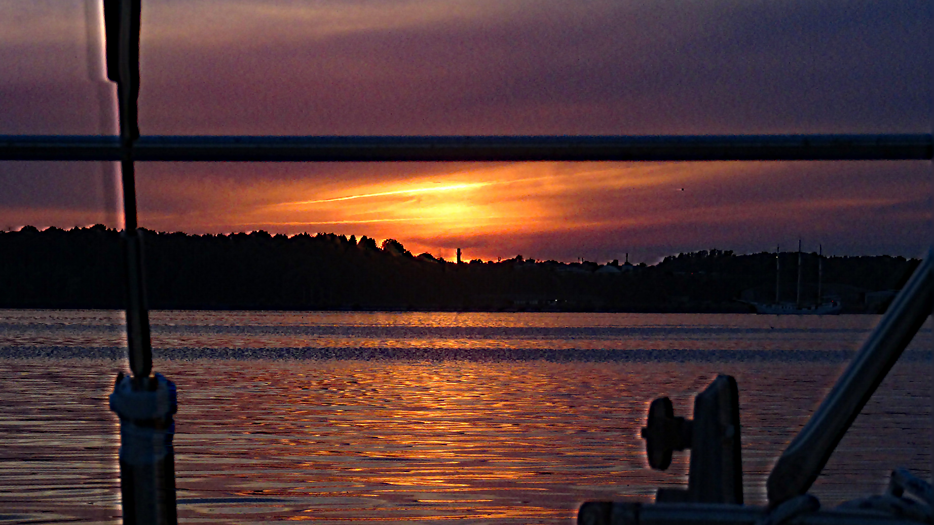 Mein lieber Mann lässt die große Backskiste an StB auf, damit die Luft etwas abkühlen kann. Und was passiert? Später am Abend ruft er: Komm mal raus, was für ein schönes Lichtermeer am anderen Ufer, er denkt nicht mehr an die offene Backskiste, stürzt und prellt sich die andere Rippe links.