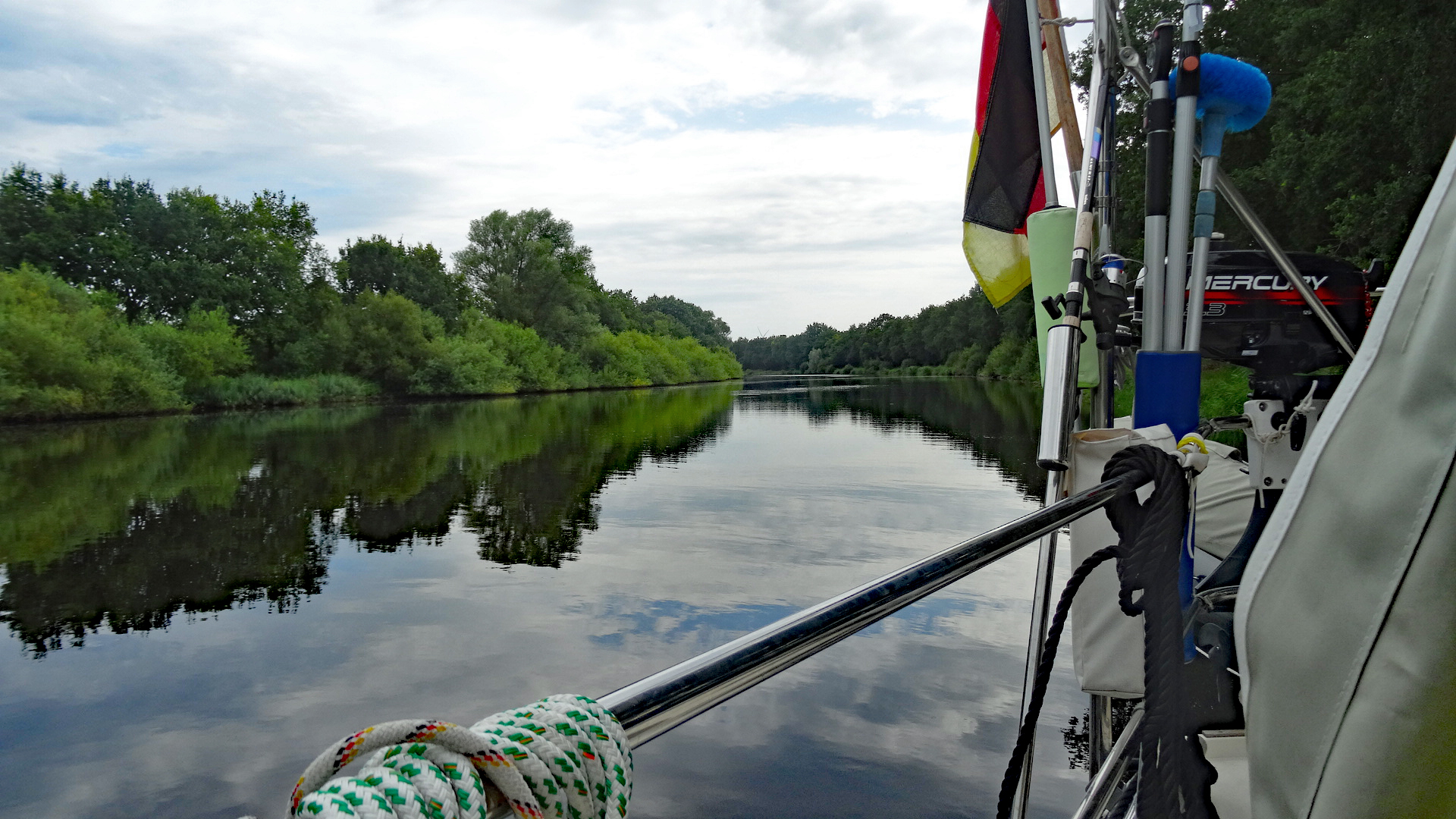 14:30h Einfahrt bei km 40,5 in den Gieselaukanal und fest am linken Steg als vorderstes Boot.