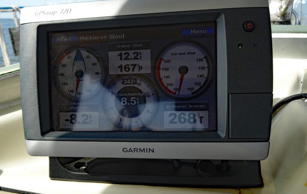 Ab ca. 14:00h können wir die erforderliche Höhe zum Wind nicht mehr laufen, deshalb muss der Motor für kurze Zeit wieder an die Arbeit.