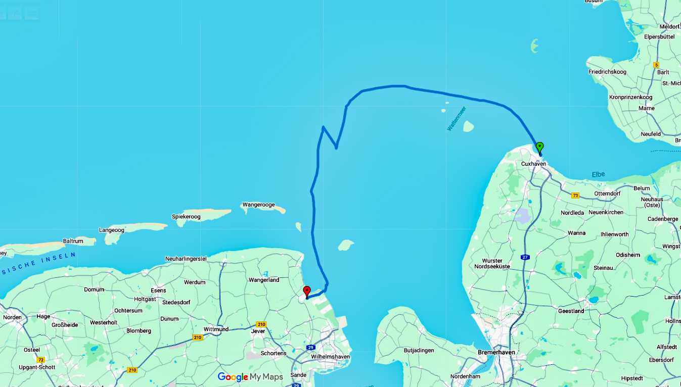 15.08.2025 - Freitag: Unsere Route heute: Cuxhaven ⇒ Hooksiel